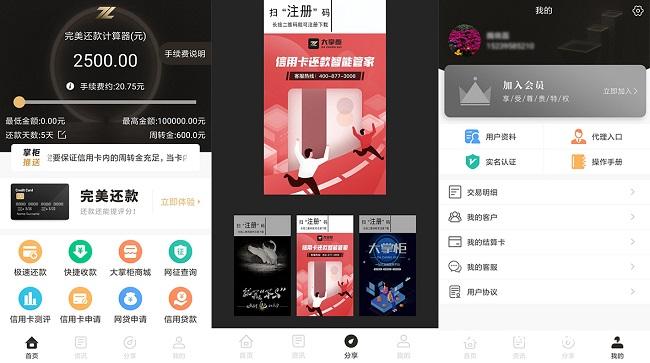 公司专注智能代还软件开发,提供正规三方全国自选积分商户通道低至0.27,保证你平台的正常运营推广,做到平台产生的所有分润妙结,直接对接三方财务系统无需担心资金安全问题,自主品牌,放手政策!